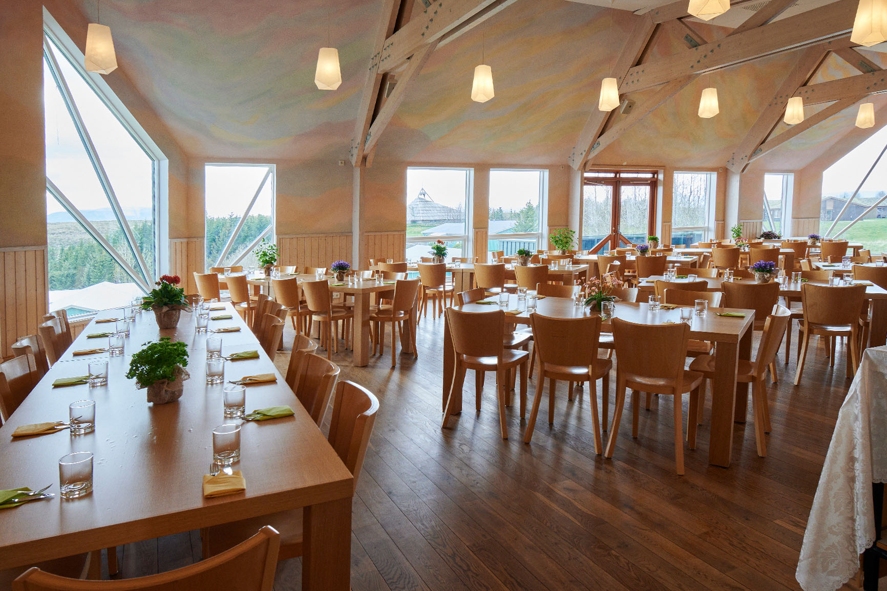 Aðstaðan á Sólheimum er því einstaklega góð og fjölbreytt hvort sem er fyrir veislur, fundi, ráðstefnur eða kennslu. Hægt er að nýta til dæmis fundarsal fyrir undirbúning, bíósalinn fyrir fyrirlestur eða ráðstefnu og hafa síðan borðhald ogveislu í Vigdísarhúsi á eftir.