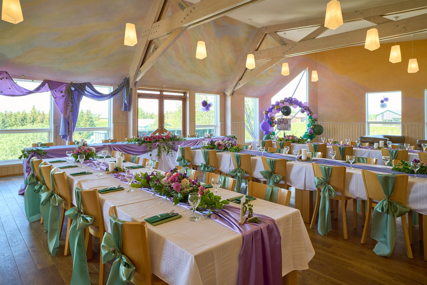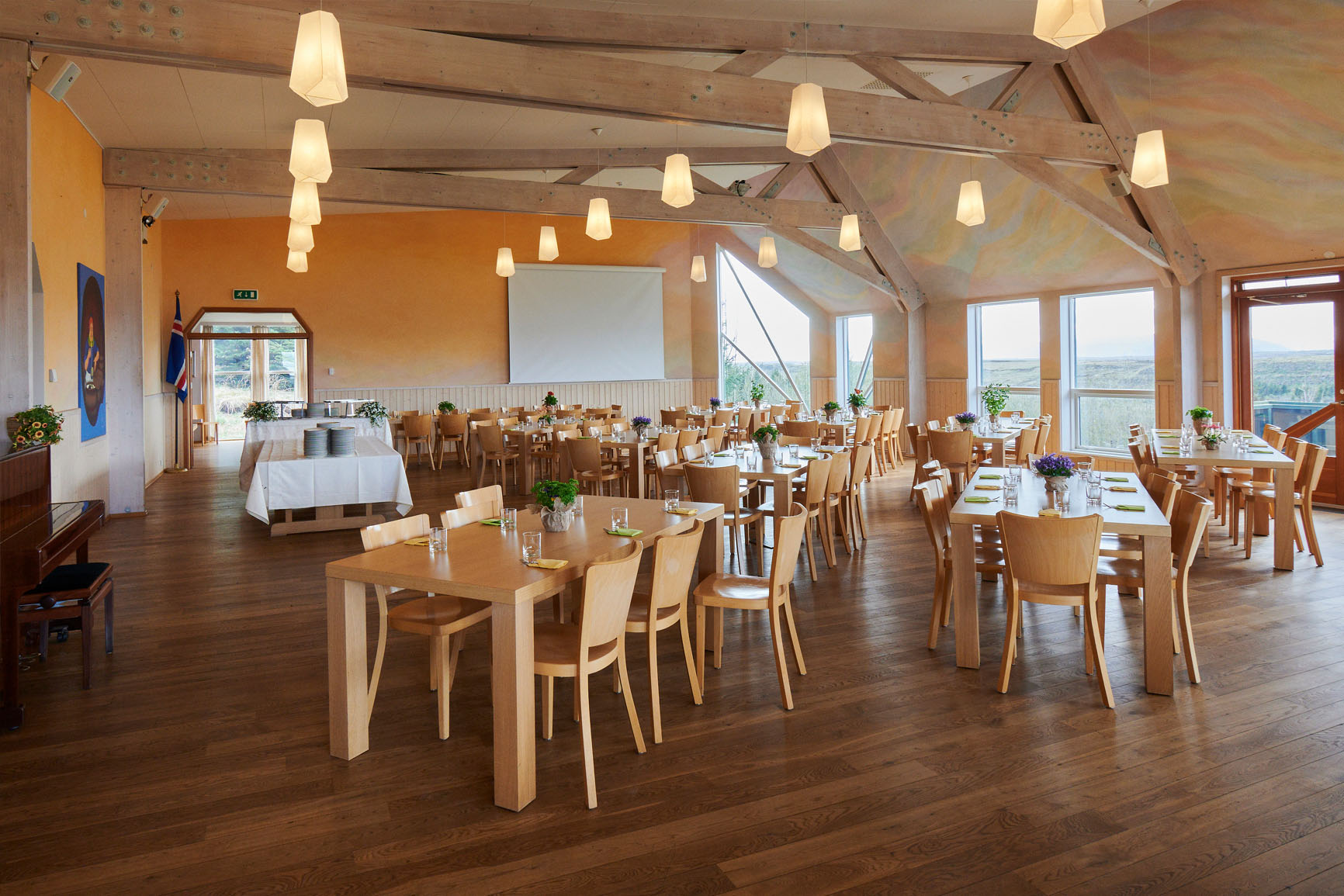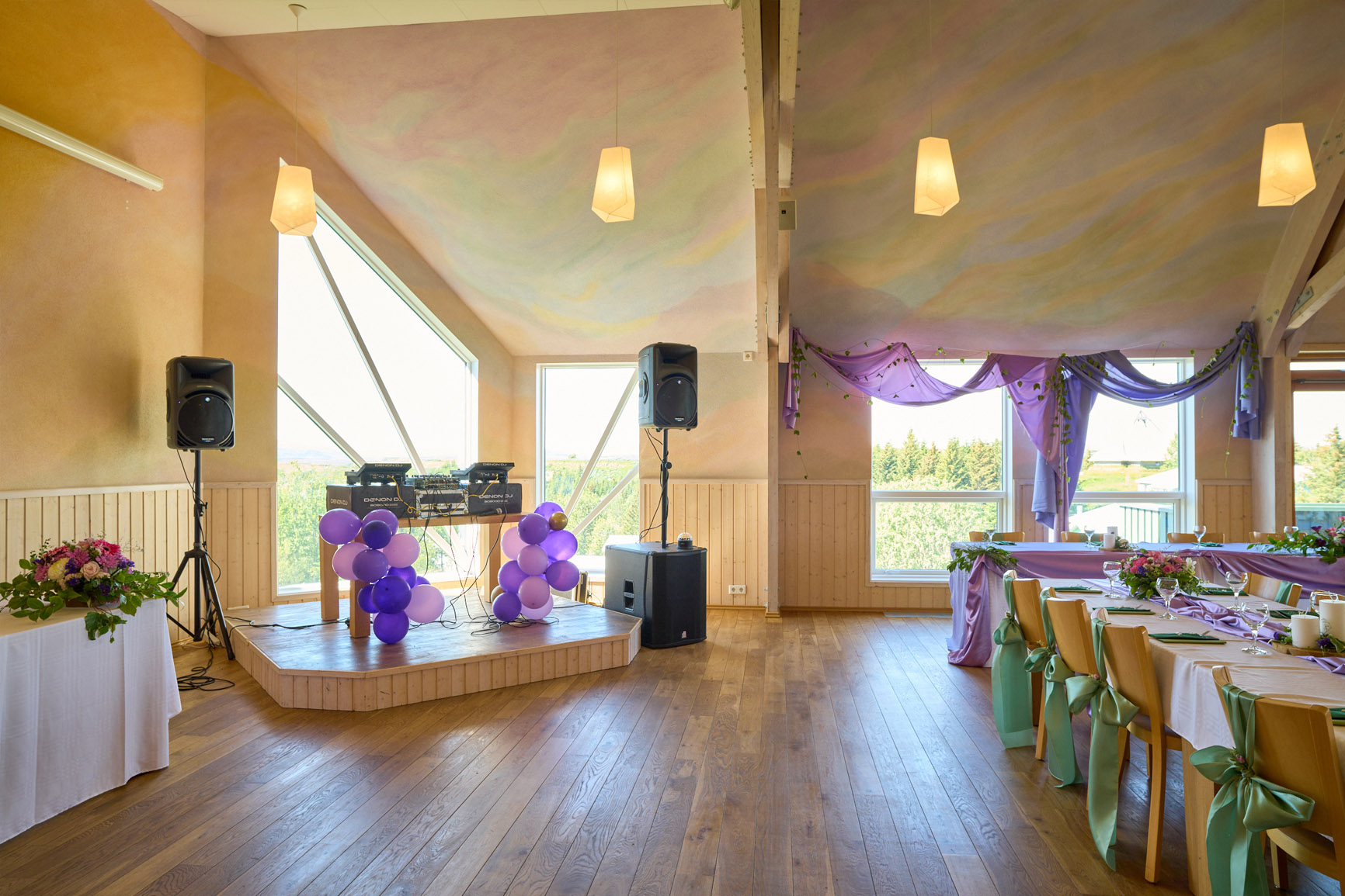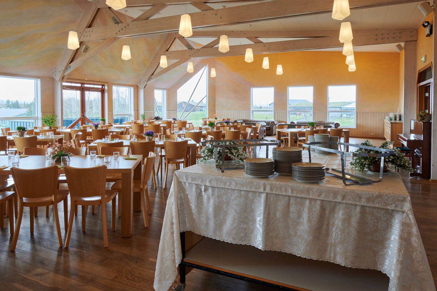 Í Vigdísarhúsi er fallegur og bjartur veislusalur með útsýni yfir fjöllin og uppsveitir Suðurlands.