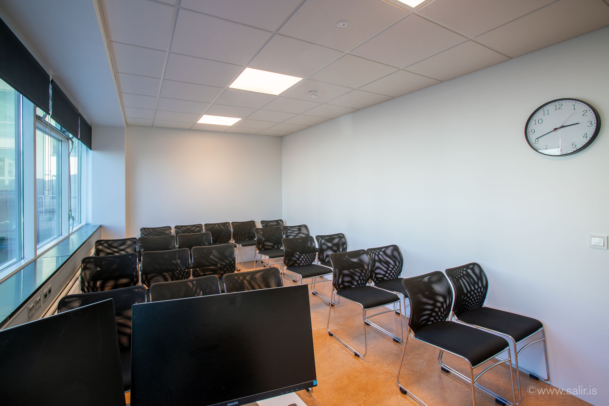 Salurinn er um 20 fermetrar að grunnfleti og tekur allt að 22 gesti í bíóuppstillingu. Salurinn er bjartur og snyrtilegur með góðri loftræstingu. Tölvu- og fjarfundarbúnaður og þráðlaust net er í salnum, ásamt upplýsingaskjá (led) sem getur tengst fartölvu.